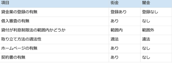 街金は貸金業法に基づいて運営される正規の金融業者です。一方、闇金は法律を無視した違法業者であり、利息制限法を超える金利や違法な取り立てを行います。