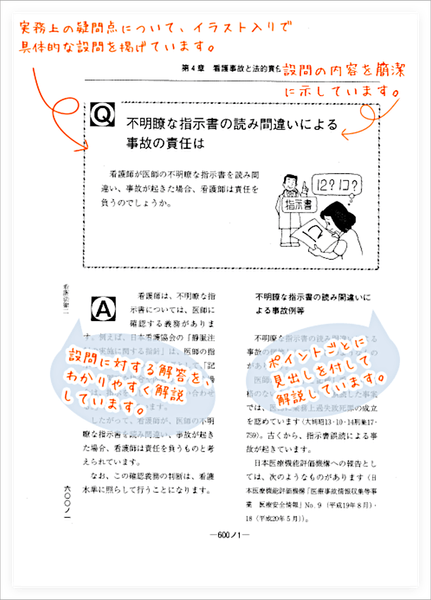 ◆看護事故に関する設問では、裁判事例を多数紹介しながら、求められる注意義務と責任について詳しく解説しています。