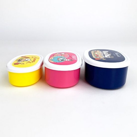 オーバルフォルムがかわいい、入れ子式ランチポックスです。スヌーピーを始め、ブラザーズのイラストがデザインされたキュートな容器たち。カラーもイエローやピンクをカラフルです♡