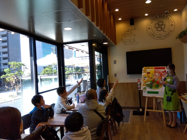 ライフからは、食べることの大切さを学ぶ食育イベントとして、バランスの良い食事についての話や不足しがちな野菜をミッションに沿って実際の売り場から探す“ミッションゲーム”を行いました。