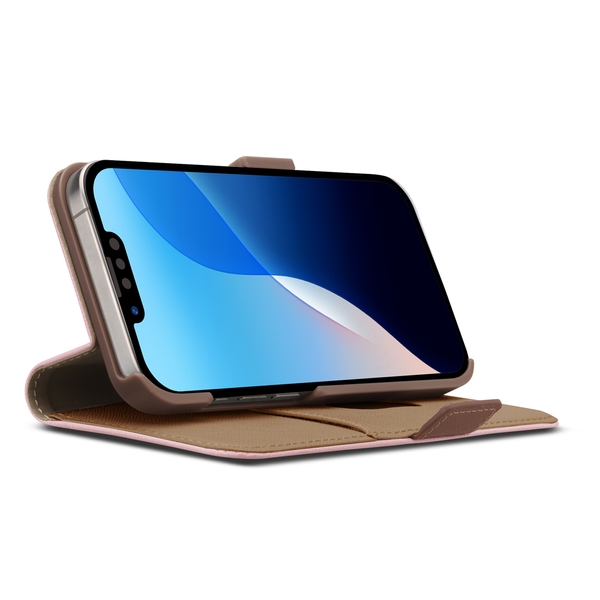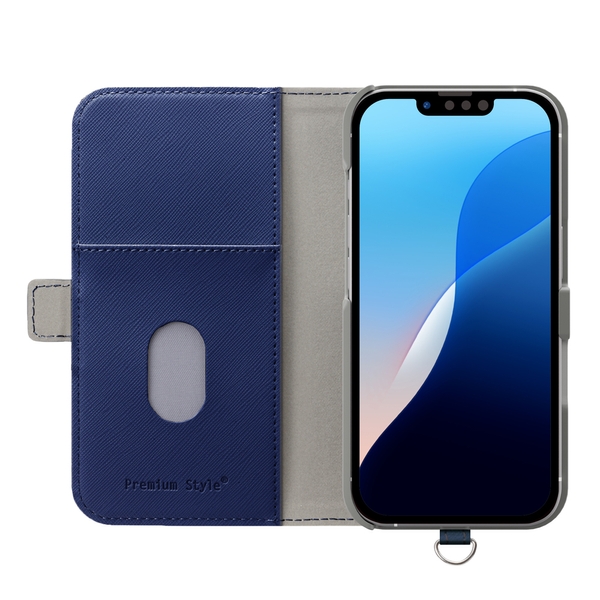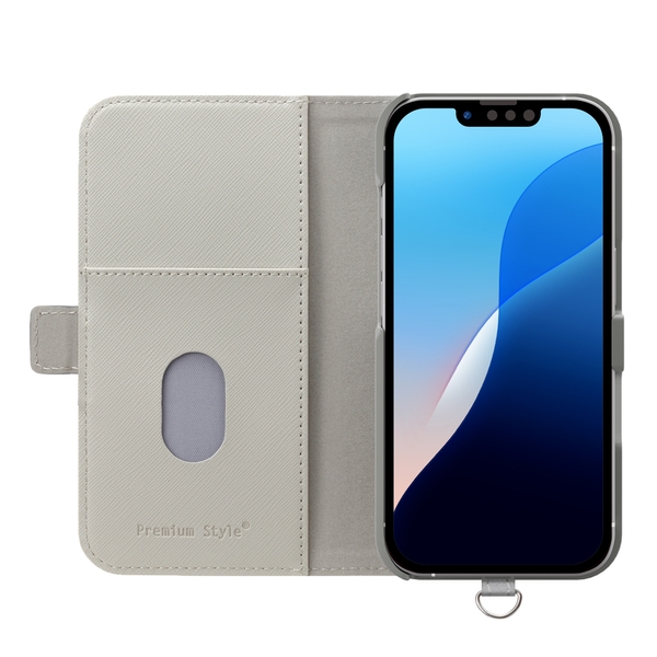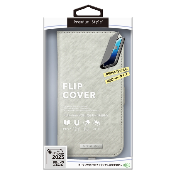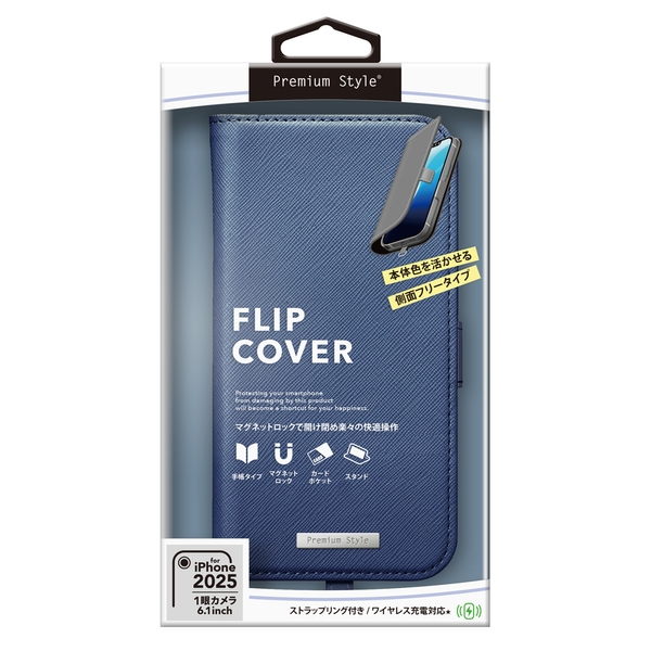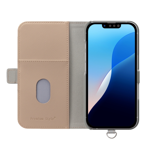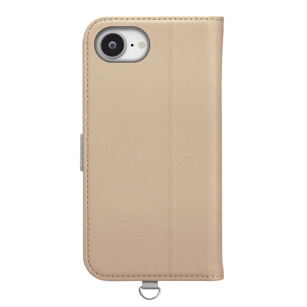 サフィアーノ調の型押し加工を施した高級感のあるPUレザーを使用したiPhone 16eフリップカバーです。