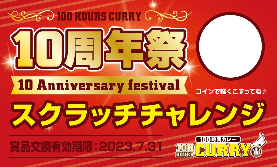100時間カレー『10周年』を記念して 6月6日(火)から6月15日(木)まで10周年祭開催!