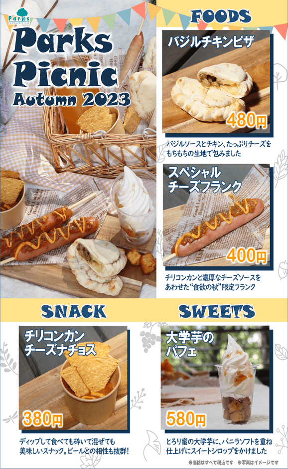 公益財団法人東京都公園協会が運営する都立公園内の飲食店にて「Parks Picnic in Autumn2023」を開催中です!
