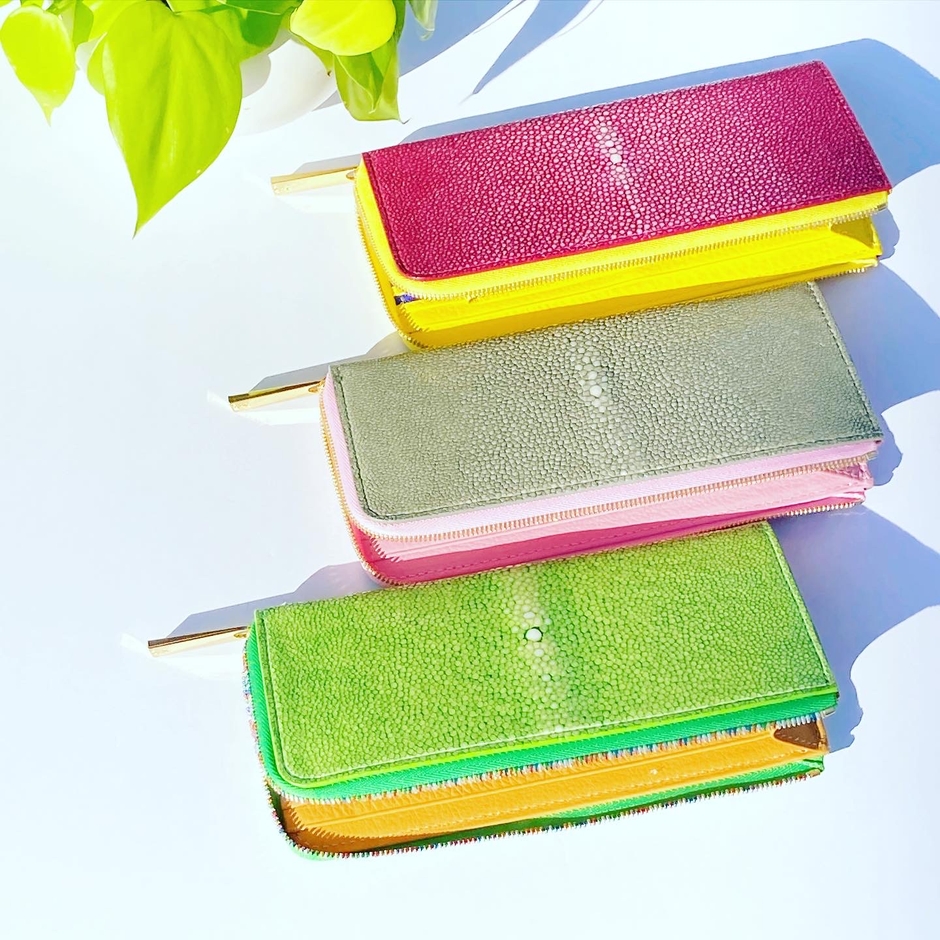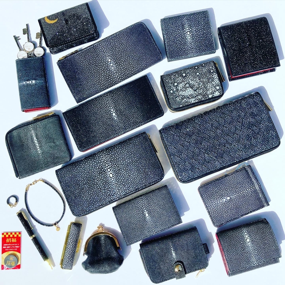 日本のブランドであるBAHARI。ガルーシャ(エイ革)は高級素材として知られており、BAHARIの製品は開運財布としても高く評価されています。キラキラと輝く美しい素材特性により、男女問わずご愛用いただけます。
