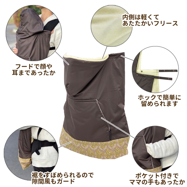 抱っこするママの手も寒さからガードするポケット付き。