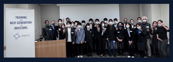 大会でご活躍した20名はPoint72 Japanのオフィスで開催された半日の対面イベントに参加し、同社のシニア・リーダー、ポートフォリオ・マネージャー、アナリストから業務のノウハウを学び、本社で実施する新卒や若手社員向けアナリスト育成集中プログラム(アカデミー・プログラム)の一部を受講しました。さらにSCRIPTS Asia の創設者兼 CEO・エリック アボット氏とエグゼクティブ ディレクター檜木泰男氏、及び特別ゲスト審査員の産業創成アドバイザリー会長兼共同創設者・佐藤文昭氏とも交流し、業界知識を深めました。