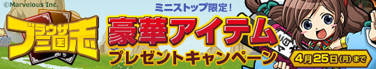 プレゼントキャンペーンバナー本キャンペーンは、マーベラスが運営する大人気オンラインシミュレーションRPG『ブラウザ三国志』とウェブマネーがコラボレーションし、ミニストップの店頭で展開するキャンペーンです。