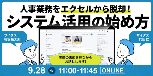 株式会社サイダス(本社:東京港区、代表取締役:松田晋、以下「サイダス」)は、2021年9月28日(火)に、「人事業務をエクセルから脱却!システム活用の始め方」ウェブセミナーを開催します。