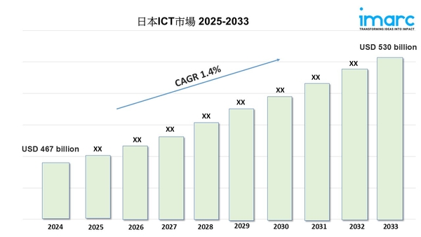 日本のICT市場規模は 2024年に4,670億米ドルに達しました。今後、IMARCグループは、 2025年から2033年の間に年平均成長率(CAGR)1.4%で成長し、2033年には5,300億米ドルに達すると予測しています。