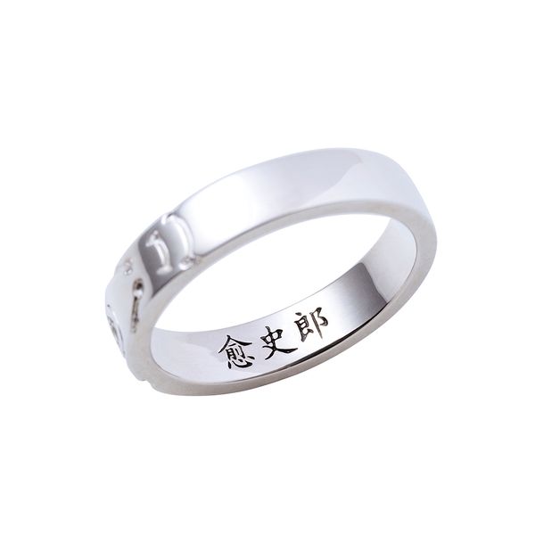 表面には愈󠄀史郎が血鬼術に使用する札をモチーフにデザインへ取り込み、内側には名前の「愈󠄀史郎」を黒いぶしで刻印しました。