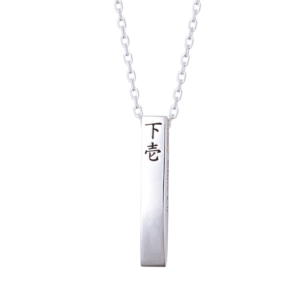 表面には顔の模様と「夢」の文字をモチーフにデザインへ取り込み、裏面には下弦の壱の「下壱」を黒いぶしで刻印しました。
