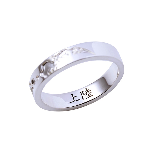 表面には帯と花の模様をモチーフにデザインを取り込み、内側には上弦の陸の「上陸」を黒いぶしで刻印しました。