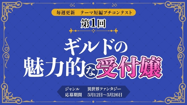 各テーマの募集期間は2週間、全7回を予定しており、第1回のテーマは〈異世界ファンタジー〉ジャンルから「ギルドの魅力的な受付嬢」です。