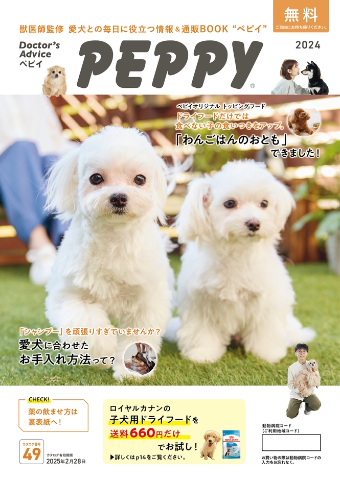 『ドクターズアドバイス・ペピイ』は、全国の犬・猫の飼い主様向けに無料配布している通販情報誌。ペピイのカタログは全国の動物病院で配布中です。