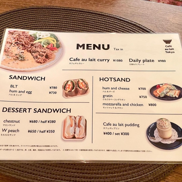 Cafe au lait(HOT・ICE) 570円 Cafe au lait Curry 1,080円