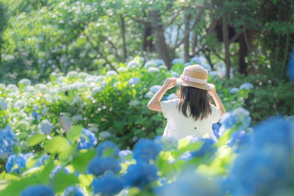 見ごろを迎える初夏には、約100種類、約2,000株もの色とりどりの紫陽花が咲き誇り、都市部にありながら自然豊かな非日常を体感できます。
