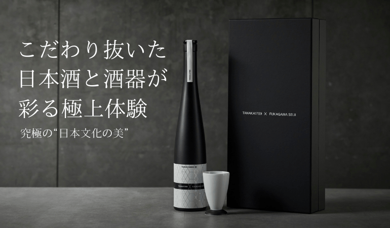 日本酒『TANAKA1789』と酒器『FUKAGAWA SEIJI』のセットは1月5日からクラウドファンディング「Makuake」で195個限定、先行発売を開始します。