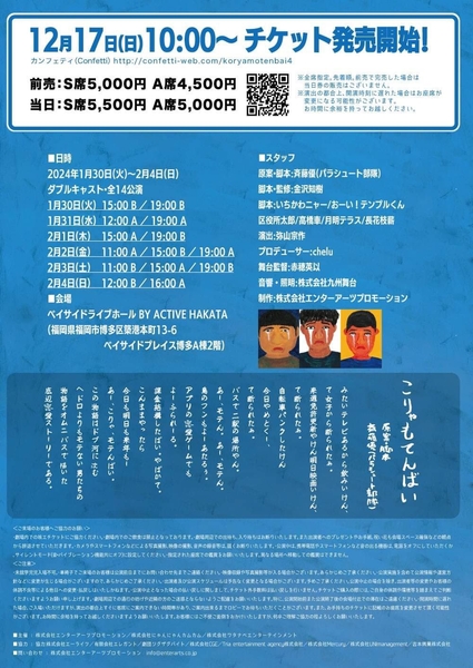 チケットはカンフェティ(運営:ロングランプランニング株式会社、東京都新宿区、代表取締役榑松 大剛)にて発売中です。2月4日(日)千秋楽は完売、2月3日(土)も残席わずか!(※本公演は生配信の予定はございません。)