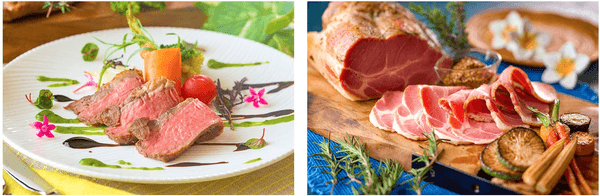 左:ライブキッチンから焼きたてをご提供する「リブステーキ」。適度な脂身と赤身のしっかりとした味わいをお楽しみいただけます。