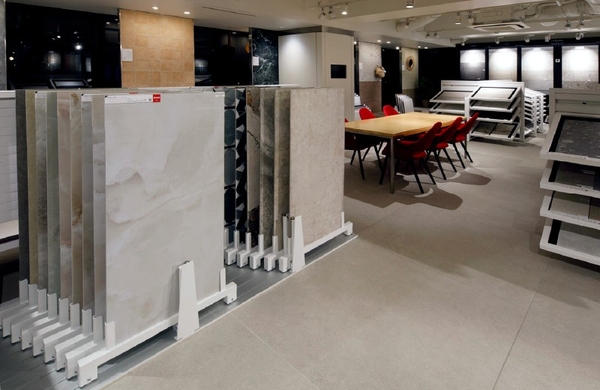1200×600mmの大判タイル現物を展示できるようになり、迫力あるスケール感や質感をそのままご覧いただけます。