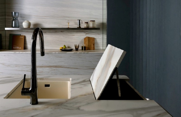 セラミックタイルを通じて、芸術性豊かなデザインと理想的なライフスタイルをお届けします。これまで壁や床に「張る」装飾材であったタイルは、空間そのものを「創造する」マテリアルへと進化を遂げました。4D CERAMICSは、独自の製造技術によりタイル内部まで柄が連続するフルボディ構造を実現。切断面や小口にいたるまで、まるで天然石のような美しさを表現できます。歴史ある素材と最先端技術の融合によって、永続的な美しさと普遍的な価値を実現しました。高級感あふれるキッチンやリビング、洗面台をはじめ家具やオーダー什器など、幅広いシーンに「非日常」のエッセンスを取り入れることで、住宅からホテルやその他商業施設まで、あらゆる空間に新たな価値をもたらします。感性と機能が共存し、日常を特別なものに変える「究極の美しさ」をぜひご体感ください。