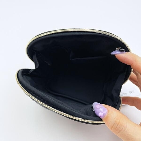 貝のような丸いシルエットがチャーミングな形です。大人っぽいデザインに合成皮革を使っており、チープな印象も感じさせないのも◎ サイズ:11cm×16.5cm×8cm 素材:合成皮革、ポリエステル