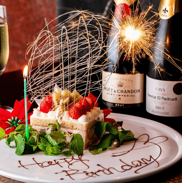 プライベート感たっぷりの半個室カップルシートもあるので、二人っきりの空間で特別な日のお祝いをしたい方は席と合わせての予約がおすすめです。