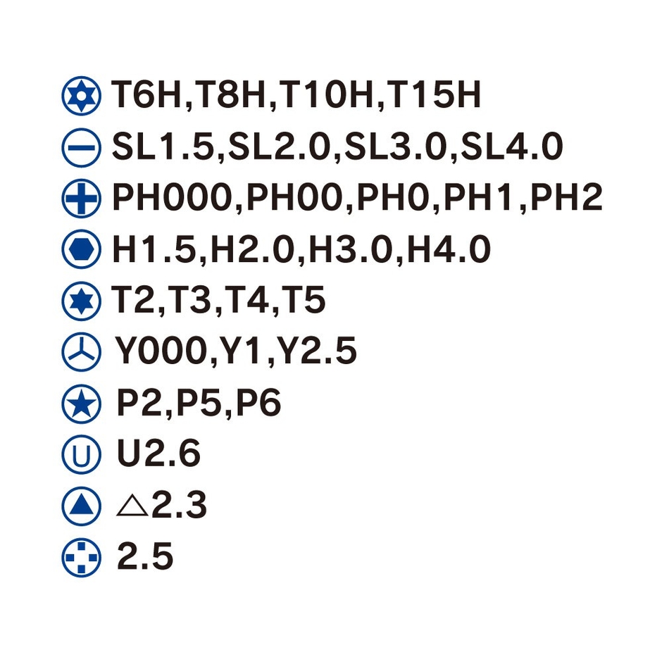 30種類のビット(先端工具)を付属しており、さまざまなネジに対応することができます。また、ビットはマグネット式で外れにくく、ネジを吸着させることが可能です。