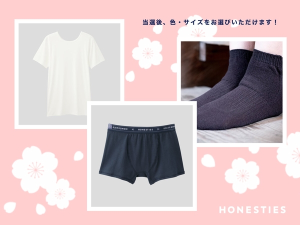 4月は、入学・就職といったタイミングや転職するタイミングの人なども多いと思います。そのような新しい環境に挑戦する方々に、少しでも力になれればと思い、HONESTIESの提供する機能性の肌着を上から下まで、肌着のTシャツ、パンツ、靴下、3点セットでプレゼントいたします!