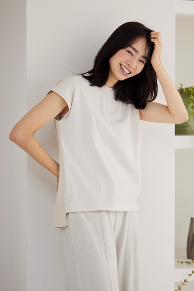 一枚でサラッと着られる、フレンチスリーブのシンプルなデザイン。