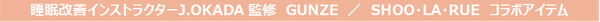 両社にとって初めてとなるコラボレーションの第1弾は、寝返りのしやすさを考えたパジャマ、睡眠専用Tシャツなど7アイテムをラインアップ。「快眠」をテーマにグンゼの睡眠改善インストラクターがオリジナルの設計と素材を開発し、シューラルーがデザイン、監修を行いました。