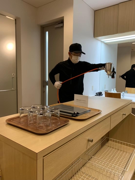 また、新型コロナウイルス感染症の感染拡大防止にも努めており、通常の客室清掃に加え、ホテル館内(客室・パブリックスペース)のアルコールおよびアルカリ電解水による清掃と拭き上げや、館内各所での除菌用スプレーの設置、食器類(お皿、グラス)やカトラリーの高温洗浄(80度以上)の実施、お客様に対しても入館時の検温や宿泊者全員のご本人確認など、徹底した感染対策に力を入れてきました。