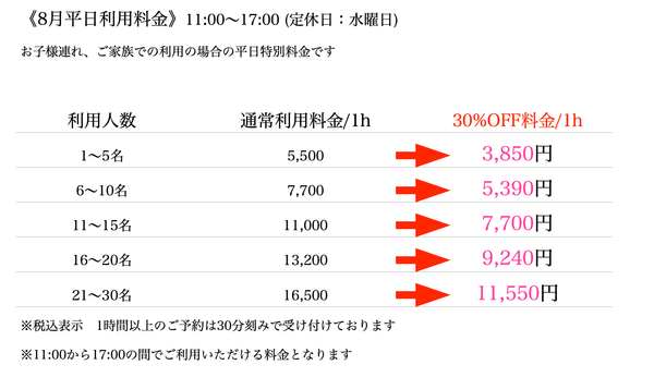 平日の家族利用は30%OFFキャンペーン実施中!