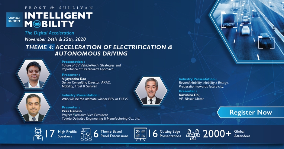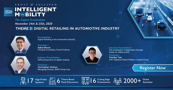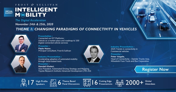 To understand how digitization is reinventing the mobility landscape, the theme of this year’s Frost & Sullivan’s Intelligent Mobility Summit 2020 is “Intelligent Mobility: The Digital Acceleration.” The two-day online summit, scheduled to be held on November 24-25, 2020 will offer unique insights into the role of digital technologies in helping stakeholders, particularly across the Asia-Pacific region, navigate the new normal and shape the future of mobility in a post-COVID scenario.