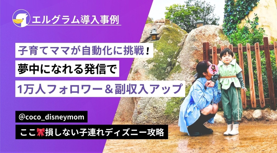 子育てママのここ様は、Instagram(インスタ)自動化ツール「エルグラム」の自動応答機能で、コメント・DM対応を効率化。フォロワー増加と“好き”の収益化を同時に実現した活用事例を紹介。