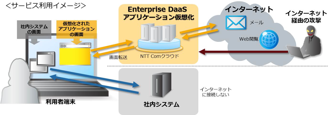インターネット経由のサイバー攻撃やモバイル端末の 紛失・盗難による情報漏洩リスクの極小化を実現する 「Enterprise DaaS アプリケーション仮想化機能」の 提供を開始