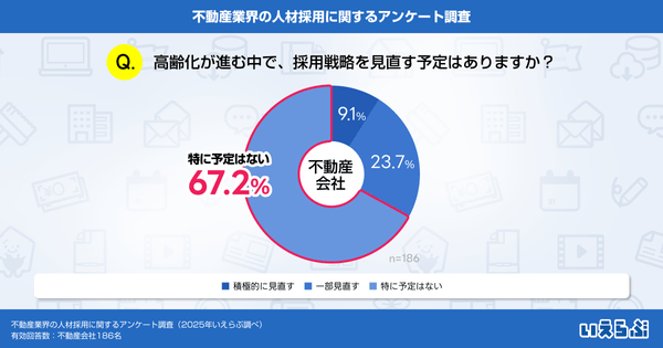 不動産業界特化のDX支援サービスを展開する、株式会社いえらぶGROUP(本社:東京都新宿区、代表取締役:岩名泰介、以下「いえらぶGROUP」)は、不動産会社に対して「不動産業界の人材採用に関するアンケート調査」を実施しました。有効回答186件の調査結果を発表します。