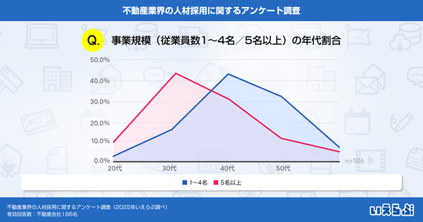 不動産業界の従業員の平均年齢、40代が最多!若年層の応募減少や求職者不足が採用課題に|いえらぶ調べ