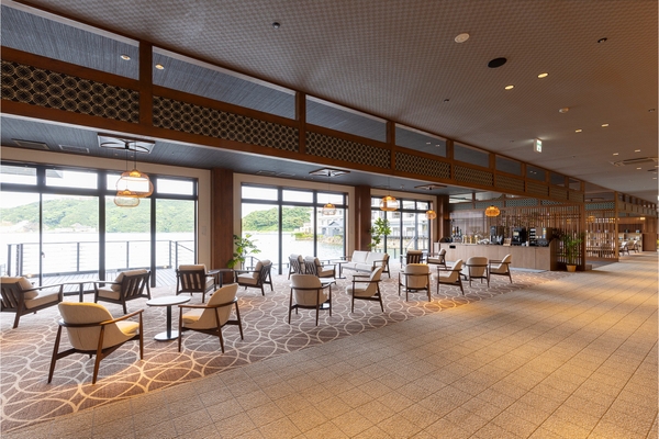 和モダンな装いのラウンジは、窓の外に広がる青い海にリゾート気分と和の落ち着いた雰囲気も感じることのできるラグジュアリーな空間。また、目の前に広がるオーシャンビューの絶景を楽しめる、海へ突き出すような造りのデッキラウンジもTAOYA那智勝浦の魅力のひとつです。無料でお楽しみいただけるドリンクを片手に、日常の喧騒から離れて、非日常の時間をお過ごしください。