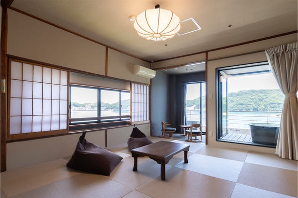 リブランドを機に、一部の客室を和ベッドルームにリノベーション。そのほか、露天風呂付客室や、和室、洋室、和洋室など、さまざまな客室をご用意しておりますので、ご宿泊される人数や旅の目的に合わせてお好きなタイプをお選びいただけます。また、ほぼすべての客室がオーシャンビューとなっているので、客室からも勝浦湾の雄大な景色をお楽しみいただけます。