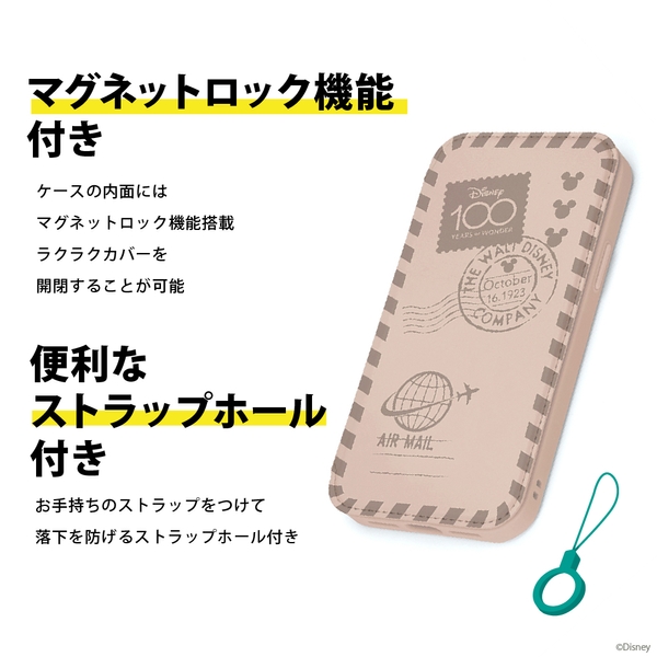 ディズニー100にインスパイアされたデザインのiPhone 14/13用 ガラスフリップケースです。フリップカバー部は上質な触り心地のよいPUレザーに型押しを施したデザインで、ケース背面はiPhone本体を活かすクリアガラス仕様なのでシールや写真を入れて自分好みにカスタマイズすることが出来ます。また、ケース内面にはマグネットロック機能を搭載しており、ラクラクカバーを開閉することが可能です。MIL規格(MIL-STD-810G)の2項目、落下・振動に準拠した試験をクリアしたタフ設計。通勤通学やお買い物に便利なカードポケット・お手持ちのストラップをつけて落下を防げるストラップホール付き。