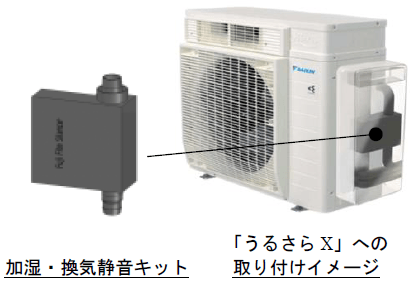 今回の成果を踏まえ、ダイキンは、今般実用化した通風防音材を「加湿・換気静音キット」とし、発売中の2022年ルームエアコン「うるさらX」「うるさらmini」のオプション品として今春より販売します。無給水加湿機能に加え、給気・排気換気機能を充実させた商品の付加価値をさらに高めます。