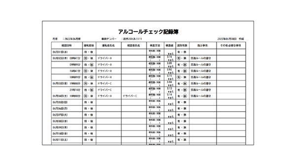 1.アルコールチェック記録