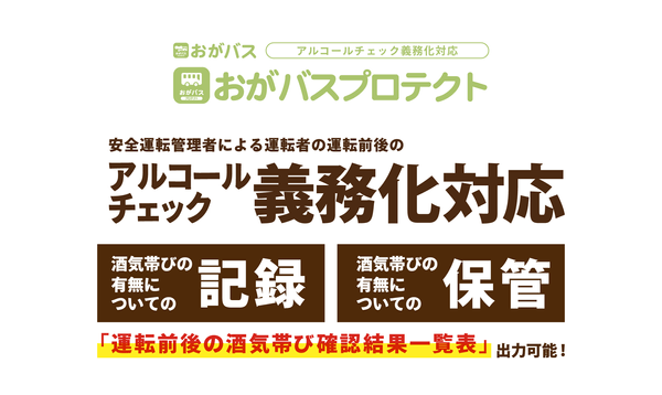 園バスの位置確認システム「おがバス」がアルコールチェック義務化に対応した「おがバスプロテクト」が登場しました。