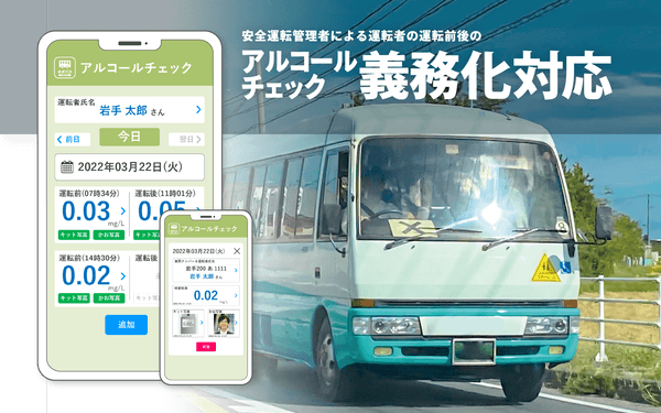 運転前と運転終了後のアルコールチェックによる酒気帯びの有無の記録を写真撮影や入力操作をし、安全運転管理者による酒気帯びの確認ができ、データを保管する機能を追加されたものになります。
