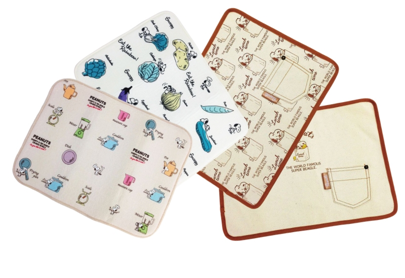 スヌーピーのランチタイムシリーズから、ランチョンマットとキッチンマットをお届けします。