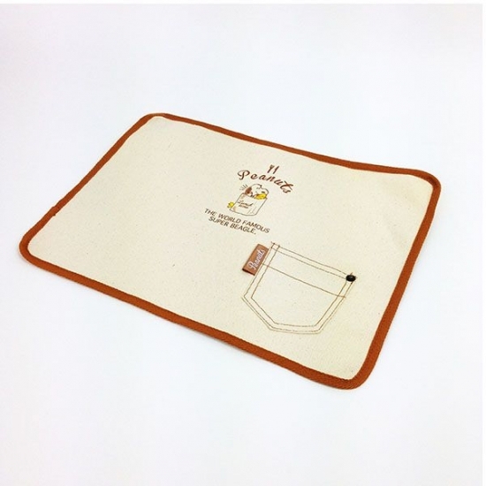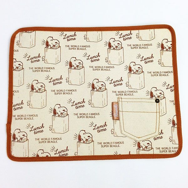 人気のランチタイムシリーズのデザインがふんだんに使われたランチョンマットです。アイボリーの地にブラウンの縁取りがナチュラルですよね。ダイニングの雰囲気を壊すことなく使えるシンプルさです。サイズは30×40cmで、右下のポケットにはナイフやフォークを入れることもできちゃいます。