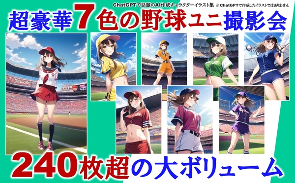 タイトル:AI妄想美少女撮影会【7色の野球ユニフォーム撮影会】