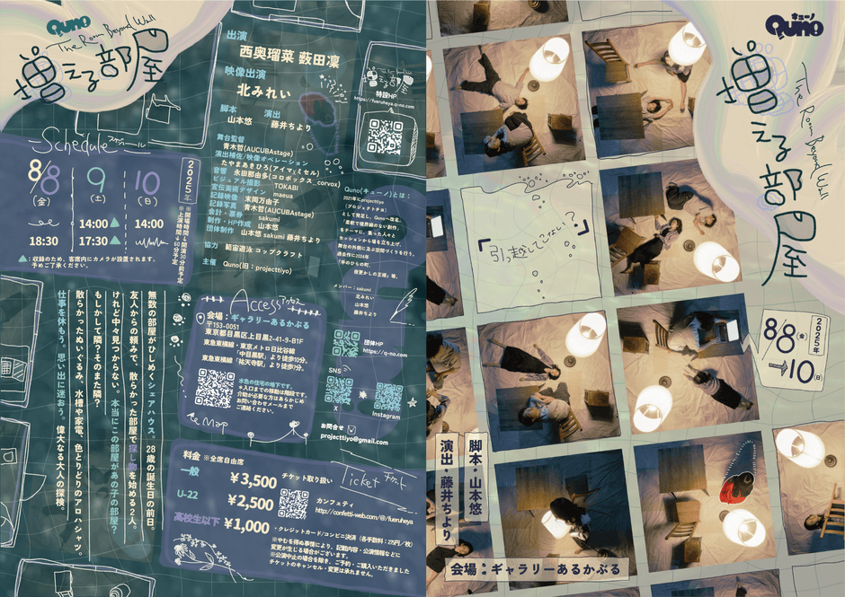 Quno『増える部屋』が2025年8月8日 (金) 〜 2025年8月10日 (日)にギャラリーあるかぶる(東京都目黒区上目黒2-41-9-B1F)にて上演されます。