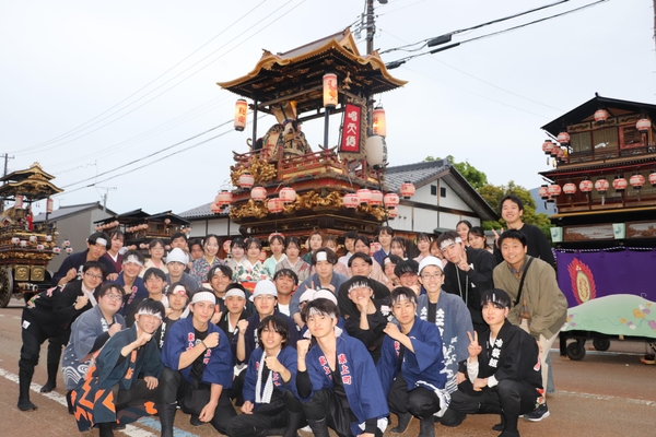 本学学務センターの連携協定先である富山県南砺市で5月4日・5日、ユネスコ無形文化遺産に登録されている「城端曳山祭」が開催され、本学から学生と職員あわせて45人が参加しました。